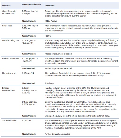 In the short term we believe growth in the non-mining sector is now sufficiently robust to offset the sharp downturn in mining, although the growth rate will inevitably be lower. Over the medium term we remain concerned about the sustainability of the current drivers of growth. House price growth spurred by an increase in household debt rather than any corresponding improvement in incomes or wealth is always fragile and unsustainable. When interest rates eventually rise, the risk factors for the Australian economy will inevitably increase commensurately