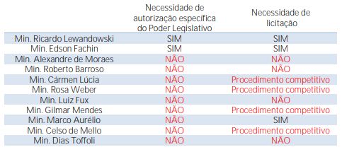 Especificamente em relação à possibilidade de alienação de subsidiárias de empresas estatais, os Ministros votaram da seguinte maneira: