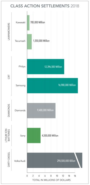 Emitting Cash: Volkswagen, Audi, and Porsche settled false and misleading advertising claims arising from environmental claims made about certain diesel engines. The car makers settled the Canadian class action for $290.5 million, and agreed to pay an additional $2.5 million in monetary penalties to the Bureau.