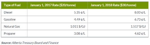 Large industrial emitters will continue to be subject to the Specified Gas Emitters Regulation framework until the end of 2017, at which time the province will transition to product and sector-based performance standards. For regular citizens, the carbon levy will be included in the price of all fuels that emit greenhouse gases when combusted, which includes fuels used for transportation and heating such as diesel, gasoline, natural gas and propane, but does not include consumer purchases of electricity. The government has published the following table outlining the carbon levy rates for major fuels for the 2017 and 2018 years.
