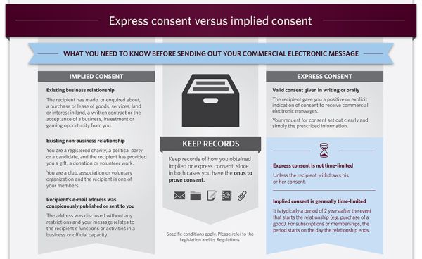 Sections 6 to 9 of CASL stipulate the restrictions for the emission of commercial electronic messages (CEMs). Unsolicited CEMs are prohibited unless the person to whom the message is sent has consented to receive it – consent may be express or implied. The message must comply with the prescribed requirements and must identify who sent the message; provide contact information to readily contact the person who sent the message, and include an unsubscribe mechanism.