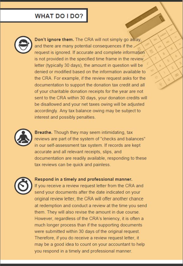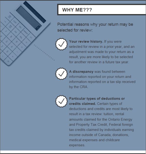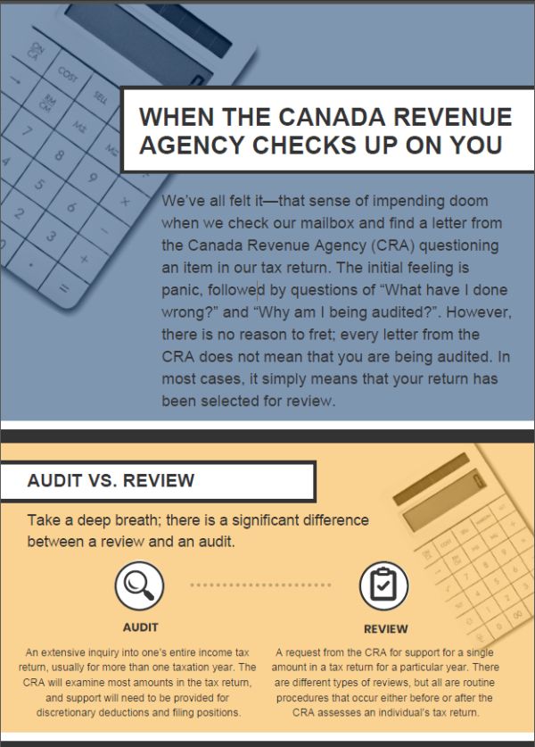 We've all felt it—that sense of impending doom when we check our mailbox and find a letter from the Canada Revenue Agency (CRA) questioning an item in our tax return. The initial feeling is panic, followed by questions of "What have I done wrong?" and "Why am I being audited?". However, there is no reason to fret; every letter from the CRA does not mean that you are being audited. In most cases, it simply means that your return has been selected for review.