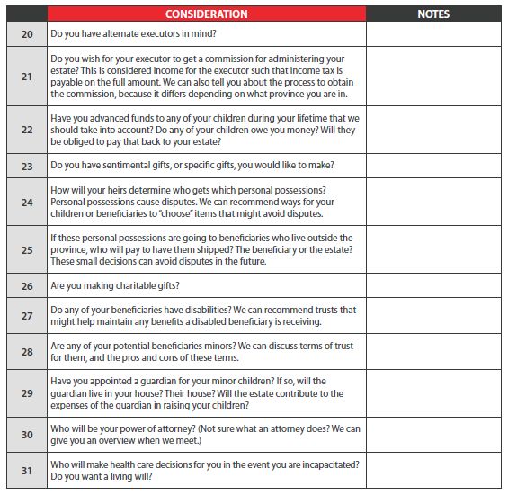 When preparing for your estate planning meeting with Cox & Palmer there are a number of things to consider. The checklist below will serve as a helpful tool.