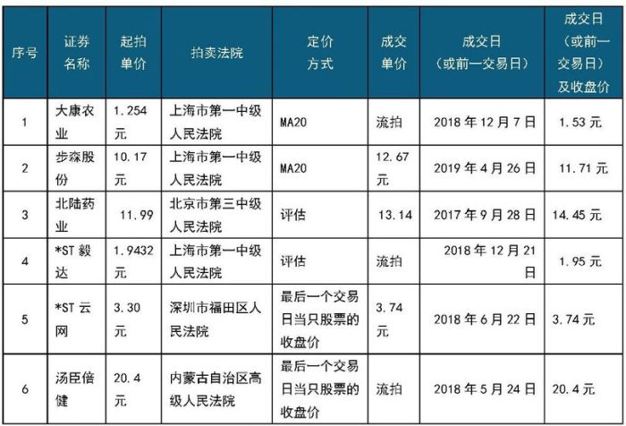 笔者对近一年来,各大网络平台上较大数额股票的司法拍卖情况进行了汇总,具体如下: