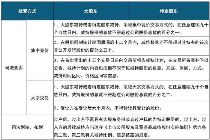 根据减新规及上海、深圳证券交易所完善减持制度的专门规则,笔者对司法变卖及司法扣划对相关股东的影响总结如下: