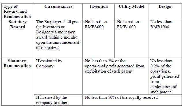 The Guidelines provide that, for creation of inventions completed in mainland China, the inventors or designers of such creation of service inventions ("Inventors or Designers") are entitled to demand for the corresponding reward and remuneration pursuant to the Patent Law and Implementing Rules for the Patent Law in China, regardless of whether the patent is applied in China or overseas.