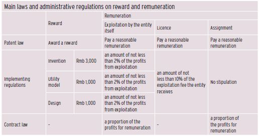 Table 1 shows the main laws and administrative regulations regarding reward and remuneration of a service invention-creation in China. The principal contents of the rewards and remunerations are prescribed in article 16 of the Patent Law. Furthermore, the specific amount of reward and remuneration is prescribed in rules 76 to 78 of the Implementing Regulations and local regulations. In addition, if a technical achievement is relevant