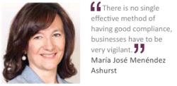 The concept of compliance is extremely broad and affects the functioning of businesses' day-to-day operations, explains Ashurst Madrid managing partner María José Menéndez. She continues: "There is no single effective method of having good compliance, businesses have to be very vigilant and this can involve creating supervisory bodies." Menéndez adds that organisations also have an opportunity to embed compliance into the automation of their businesses, though this can be challenging.