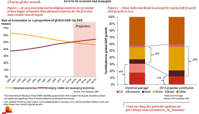 2.Emerging economies in the 'driving seat' of global growth in 2013.