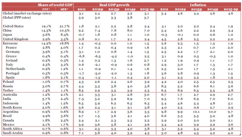 1.Advanced economies projected to be smaller than emerging economies in 2013 for first time since reliable records began.