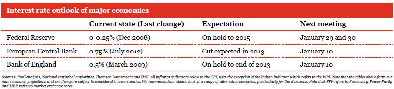 Advanced economies in the back-seat of global growth: In 2013, we expect the world economy to expand by 3.3% in PPP terms - close to its long-term trend rate. But what will change from past cycles is that the emerging economies will be critical in driving global economic growth. Figure 2 shows that China, India and Brazil are projected to contribute around half of global economic growth in 2013. This contrasts with the 25 years preceding the financial crisis, when they contributed only around a quarter of global growth.