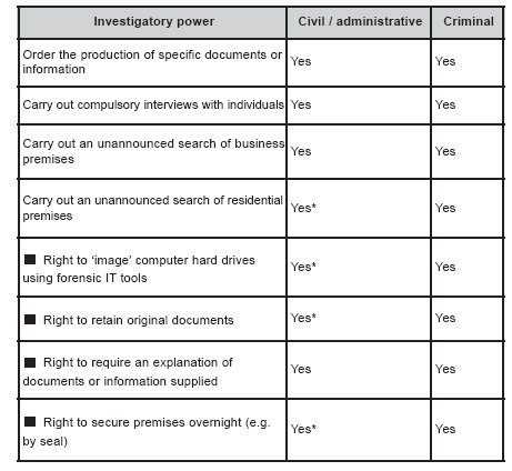 Please Note: * indicates that the civil/administrative investigatory measure requires the authorisation by a court or another body independent of the competition authority.