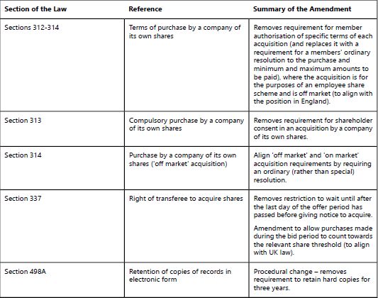 To ensure that the Companies (Guernsey) Law, 2008 (the "Law") keeps pace with the needs of local business and to respond to developments in other jurisdictions, the Committee for Economic Development (the "Committee") continuously reviews the Law. As such, the Committee has recommended a number of amendments (the "Amendments") to the Law, which are intended to address a variety of issues. This advisory note sets out a summary of the proposed Amendments.