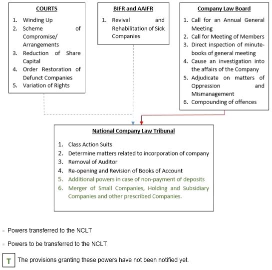 - The Company Law Board is scrapped and going forward the matters will be taken up by National Company Law Tribunal