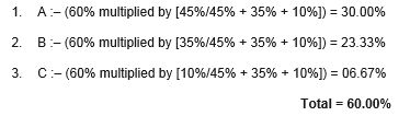 In case of more than one entity in the promoter/promoter group in a company, the excess promoter holding for the purpose of taking action shall be computed on a proportionate basis. For illustrating the above, if there are three promoters; A, B and C with shareholdings of 45%, 35% and 10% respectively, the excess promoter holding of 60% shall be allocated as follows: