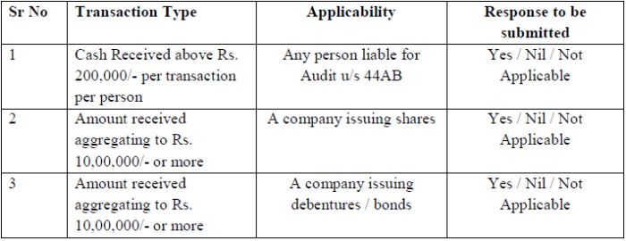 us the details of the above mentioned transactions at your