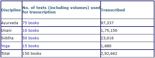Current status of transcription of the traditional medicine formulation in the Traditional knowledge Digital Library is given in the following table: