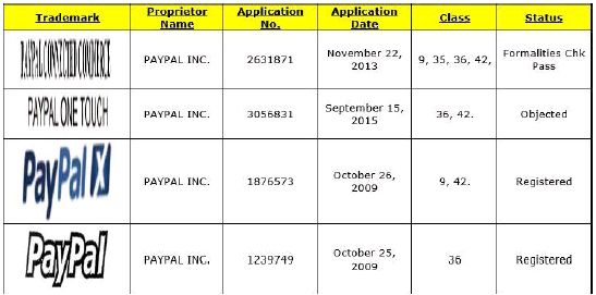 On November 18, 2016, the American online payment solution company PayPal, had opposed an Indian electronic commerce and payment system company, Paytm's trade mark application, numbered 2370686 with the Indian Trademark Office. They marked Paytm's trademark as "deceptively and confusingly similar to PayPal" due to a similar colour scheme. Additionally, PayPal questioned the intent of Paytm which according to them is to allegedly, feed on the fame and popularity gained by PayPal.