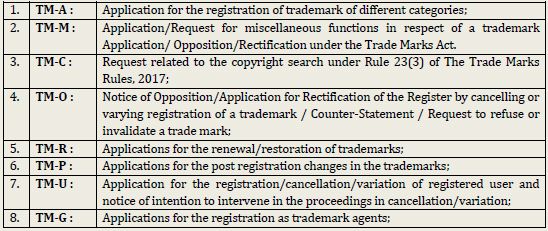 1. Reduction in Number of Forms: In the Trademark Rules, 2002 there were 75 different forms for the various procedures relating to the trademark registration and prosecution. It includes different types of trademark application, application for the post-registration procedures etc. In the Trademark Rules 2017, the numbers of forms are reduced to mere 8 types and divided according the procedures for which a Form is to be filed. The move to reduce Forms will certainly make the process for a laymen little bit less confusing. The forms available for the online filing are very much interactive in nature and a person with limited knowledge can certainly file an application for the registration of trademark without any help of a professional. The categories of forms after the amendment are as mentioned below: