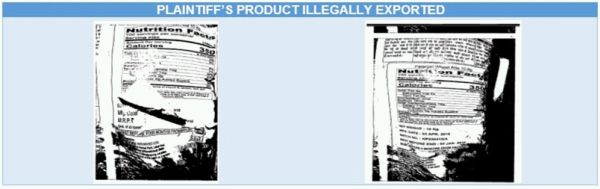 Defendants. PLAINTIFF'S PRODUCT ILLEGALLY EXPORTED