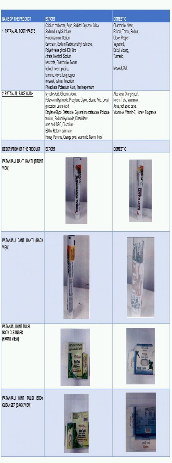 - It was further argued that for the products which were meant for domestic sale worded "intended for sale in Indian subcontinent only" appearing on the packaging. In contrast, the products meant for export had the words "export only" printed on them. The difference in the packaging was explained by way of illustration in respect of the its toothpaste and facewash. These products when sold in international market not only had a detailed ingredient list but the packaging of the product was also distinctly different from that of domestic products.