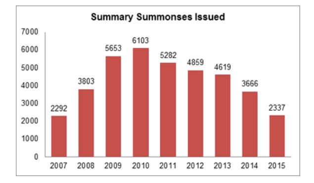 Looking closely at the numbers of High Court summary summonses issued over the past eight years, the table below shows that numbers of such summonses issued in 2015 were just over 2,000, slightly over a third of the amount issued in 2010. The upward revision of the monetary jurisdiction limits in early 2014 has affected numbers, but the graph remains indicative of a broader trend.