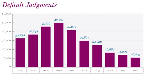 Further evidence that Ireland is emerging from economic recession can be seen in the publication of the Courts Service Annual Report 2016 (the Report). An examination of the Report's figures relating to debt collection activity shows a continuing decline in creditor litigation and enforcement. The number of default judgments marked in 2016 across the District, Circuit and High Courts shows a fall to 10,475 from 14,204 during the previous year. This represents almost an 80% drop on the equivalent number of such judgments marked in 2010.