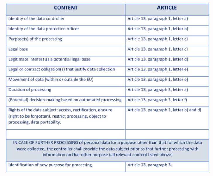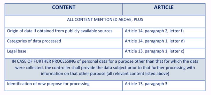 - if the data subject already has the necessary information (Art. 13. Par. 4, Art. 14, par. 5)