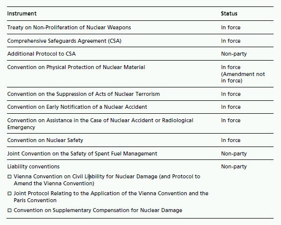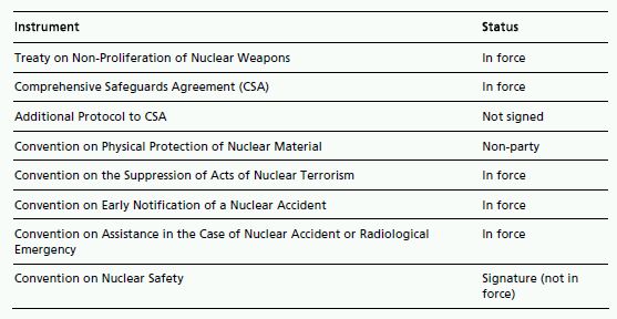 The table below sets out the status of international nuclear instruments in Saudi Arabia.