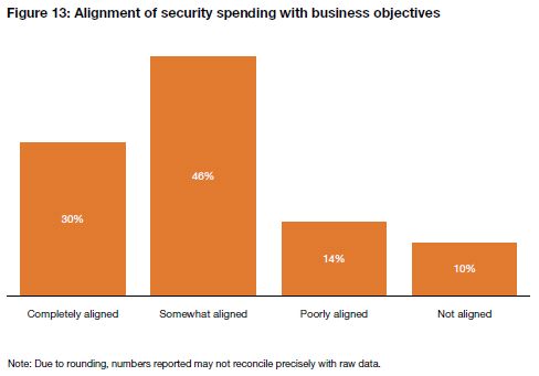 A focus on business success should inform all aspects of the organization's activities. Most respondents say security strategies and security spending are aligned with business goals.