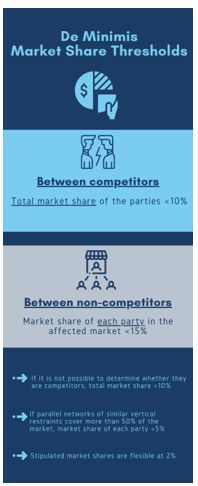 - Agreements between competitors where the combined market share of the parties does not exceed 10% in any of the markets affected by the agreement; and