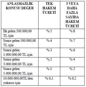 Tebliğe göre verilecek ücretler yukarıdaki tabloda belirtilmiştir. Başkanın ücreti, hakemlerden her birine ödenecek hakem ücretinin yüzde on fazlası olarak hesaplanır ve bu şekilde hakemler arasında paylaşım yapılır.