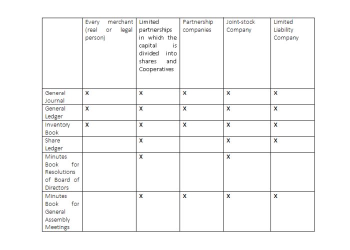 COMPANY BOOKS THAT MUST BE KEPT ACCORDING TO THE TYPE OF COMPANY
