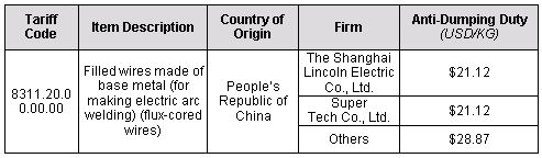 Anti-Dumping Duty Will Continue For Chinese Imports of Flux-Cored Wires for Electric Arc Welding