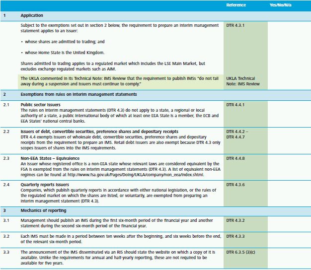 APPENDIX 2 – INTERIM MANAGEMENT STATEMENT DISCLOSURE CHECKLIST This IMS checklist is based on the Disclosure and Transparency Rules (DTR). In the