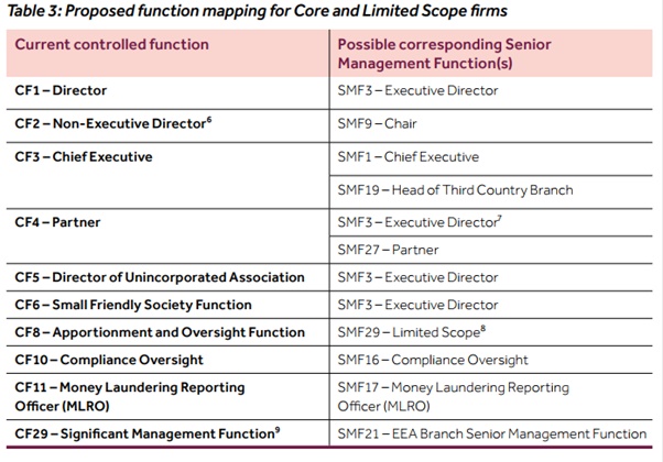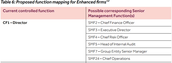 For Enhanced Firms Table 6 in the Consultation Paper sets out the SMFs which existing Approved Persons can Convert into, based on their current CF.