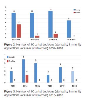 Recently, there has been a noticeable fall in the total number of successful immunity and leniency applicants, with 46 in 2014, 32 in 2015 and 24 in 2016,8 and those numbers are often cited when debating the impact of private litigation on the Commission's ability to detect cartels.