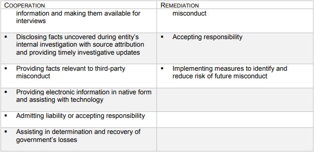 The Bottom Line: While the identified actions for achieving maximum credit for cooperation and remedial efforts are not new, the formal application to civil FCA cases in the Justice Manual is new guidance and helpful in achieving global resolutions with the government. Notably, the only limitation on the amount of credit an entity or individual may receive for such efforts is the minimum threshold of "full compensation" for the losses to the government. This is in contrast to the HHS-OIG Self-Disclosure Protocol that contemplates a minimum damages multiplier of 1.5x even after a timely and complete disclosure is made
