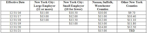 Reminder: New York's Minimum Wage Increase Has Already Been Enacted and Will Be Effective December 31, 2016.