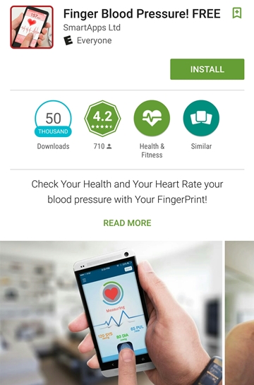 Some app developers are also facing increased scrutiny on a more fundamental issue: the functionality of their apps. Researchers at Johns Hopkins recently found that one of the most popular mobile apps used to measure blood pressure was wrong 8 out of 10 times. The app, called "Instant Blood Pressure," is no longer available for purchase, but users who previously downloaded it are still able to use it. The app measures blood pressure by having the user place their finger over the camera while placing the phone's microphone on their chest. Other apps, including the one below, measure blood pressure through other means: