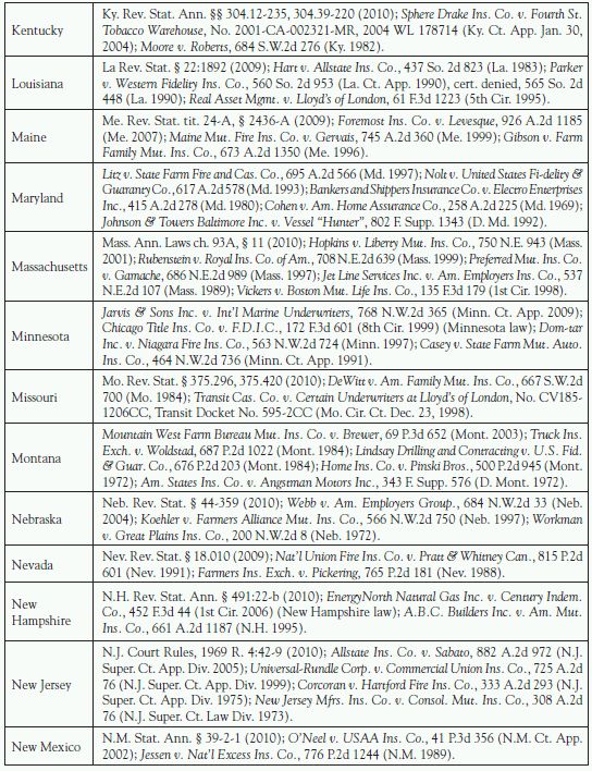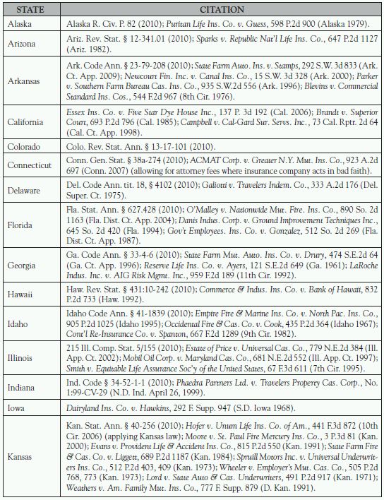69 This article updates and expands W. Passannante and D. Shafter, "Paying by the Rules," The John Liner Review 16, no. 3 (2002): 84; and W. Passannante and R. Chung, "Who Pays for the Insurance Coverage Fight? A Majority of States Permit Recovery of Policyholder Attorney's Fees," Mealey's Attorney Fees 2, no. 3 (1999).