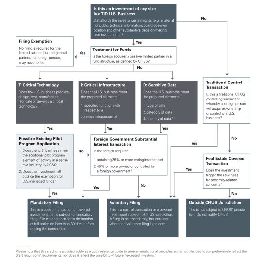 See the chart below for an overview of CFIUS jurisdiction under the proposed regulations.