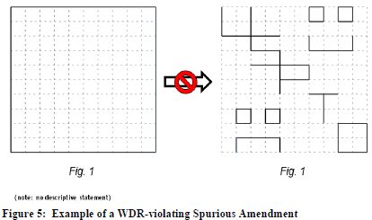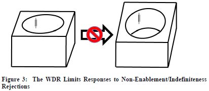 7 In the GUI DPA context, and setting aside novelty, the amendment shown in Figure 1 likely would receive a WDR rejection. The amendment would be less likely to receive a WDR rejection if it were part of a set of figures relating to a cube having a punched-out cylinder as described previously.