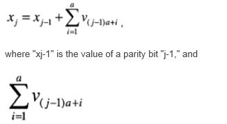 generating a sequence of parity bits, wherein each parity bit "xj" in the sequence is in accordance with the formula