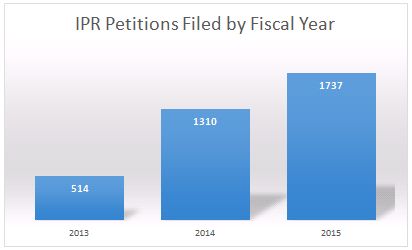 Patent savvy companies fight patent trolls using a new United States Patent and Trademark Office (USPTO) process, Inter Partes Review (IPR). The America Invents Act created the IPR process for accused infringers to efficiently challenge the validity of a patent asserted in a lawsuit. An IPR petitioner (e.g., the accused infringer) can request the court to stay the lawsuit pending the outcome of the IPR. The new IPR process has seen record growth since its institution in 2013, from 514 petitions filed in 2013,5 to over 1700 petitions in 20156.7