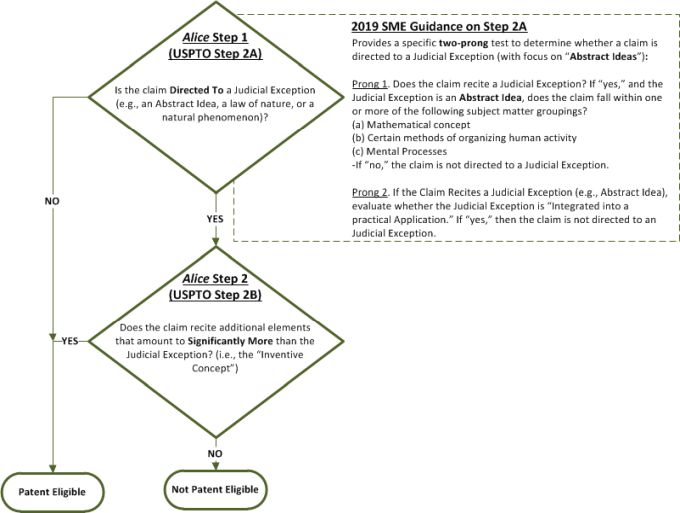The 2019 Guidance represents a fundamental change to patent examination procedure, with a focus on "abstract ideas." In particular, the 2019 Guidance seeks to clarify the Supreme Court's Alice test by breaking the first step of the Alice decision (i.e., Step 2A under the 2019 Guidance) into a two-prong test. In particular, under the first prong of the 2019 Guidance (Step 2A, Prong 1), if an examiner determines that a claim recites an "abstract idea," then the examiner must determine whether the claim falls within an enumerated list of three subject matter groupings.