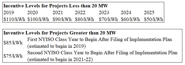 On March 11, the New York State Energy Research and Development Authority ("NYSERDA") filed its proposed Implementation Plan to administer its Energy Storage Market Acceleration Bridge Incentive Program and support the ambitious New York Public Service Commission ("PSC") order issued in December 2018 requiring 1.5 GW of energy storage in New York by 2025 and 3 GW by 2030 (the "Storage Order"). The Implementation Plan breaks down the state's incentive strategy primarily between "Retail Storage Incentives" and "Bulk Storage Incentives," and provides essential preliminary details for sponsors, investors, and lenders considering energy storage projects in the state. Both programs will officially launch in Q2 2019. This article summarizes the key attributes of the Bulk Storage Incentives program (the "Bulk Storage Program") and associated NYSERDA Bulk Storage Incentive Program Manual (the "Program Manual"). A prior article focuses on New York's incentive strategy more generally and Retail Storage Incentives (see NYSERDA Unveils $350/kWh Retail Energy Storage Incentive in Implementation Plan and Program Manual).