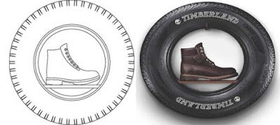 The Board found that the mark sought to be registered is "validly displayed on the specimen of use." It conveys a "very distinct" commercial impression: the incongruous juxtaposition of a boot inside a tire. The Board agreed with applicant that the differences between the drawing and the specimen "are not critical and do not alter the overall commercial impression of the applied-for mark."