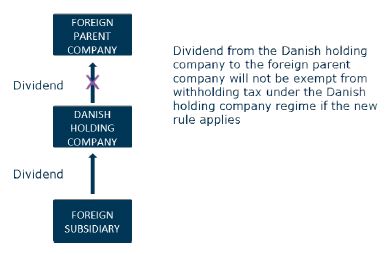 In the bill the Danish Ministry of Taxation also proposes a new rule to close a loop-hole that according to the Ministry has been used to circumvent Danish withholding tax on dividends paid to foreign parent companies that are not able to benefit from the Danish withholding tax exemption.
